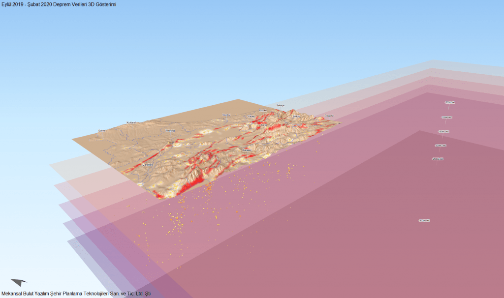 Mekansal Bulut ekibi olarak sizlere 2019 Eylül ayından 2020 Şubat ayına kadar Türkiye ve yakın çevresinde ölçülen depremlerin 3 Boyutlu gösterimini sunuyoruz.