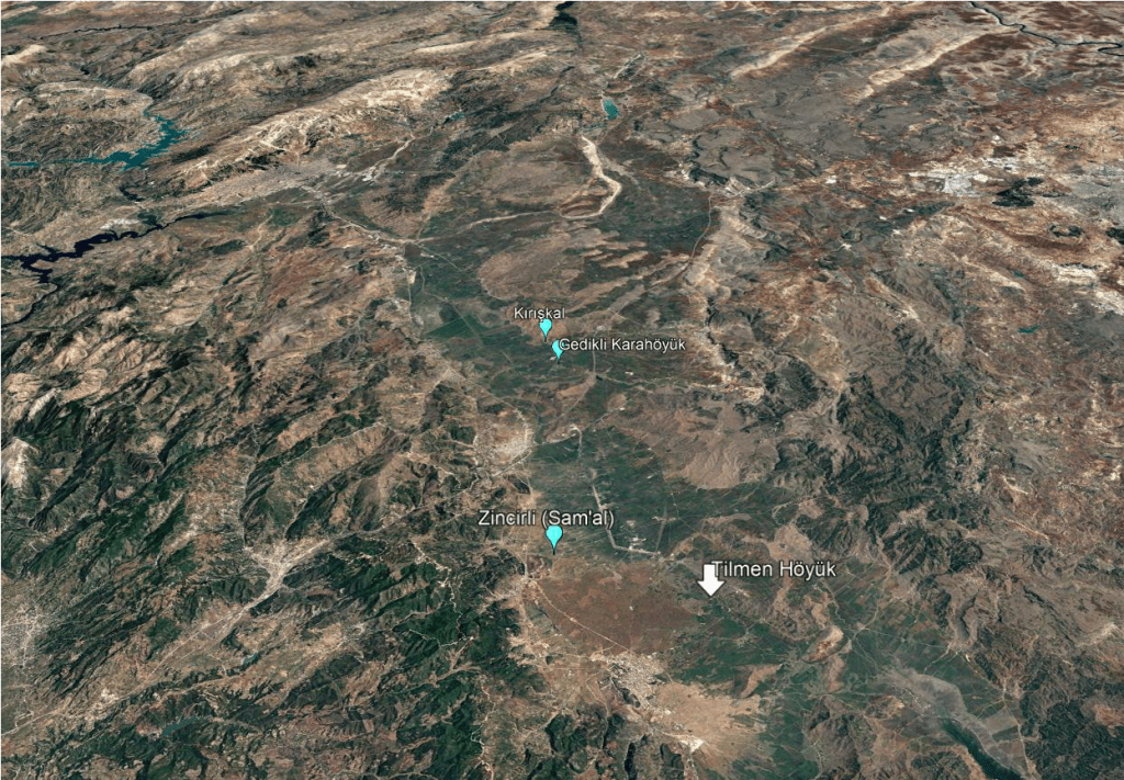 Tilmen Höyük’e Gaziantep ili İslâhiye ilçesinden Yesemek’e doğru giden yolun 10. km.’sinden sola doğru yaklaşık 1 km.’lik asfalt bir yol ile ulaşılmaktadır. Höyüğün deniz seviyesinden yüksekliği yaklaşık 422 metredir. Höyüğün bulunduğu Islahiye bölgesi arkeolojik bağlamda oldukça dinamik bir bölgedir. Yerleşme vadinin ortasında, akarsulara çok yakın ve sivri bazalt kayalıklar üstüne kurulmuştur. Tilmen Höyük’ün yakınında başlıca Zincirli (Sam’al), Kırışkal ve Gedikli (Karahöyük) gibi pek çok arkeolojik yerleşme bulunmaktadır.