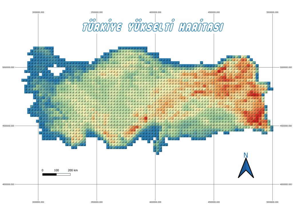 Coğrafi Bilgi Sistemleri LEGO ile buluştu. QGIS ile gerçek Dijital Yükseklik Modeli esas alınarak hazırlanan model, Qgis2threejs eklentisi ile 3D model olarak dışarı aktarıldı.